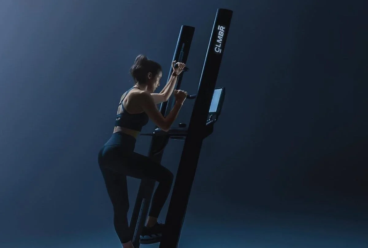Climb classes are performed entirely on the CLMBR. They focus on full-body strength, cardiovascular conditioning, and rhythm-based movement.